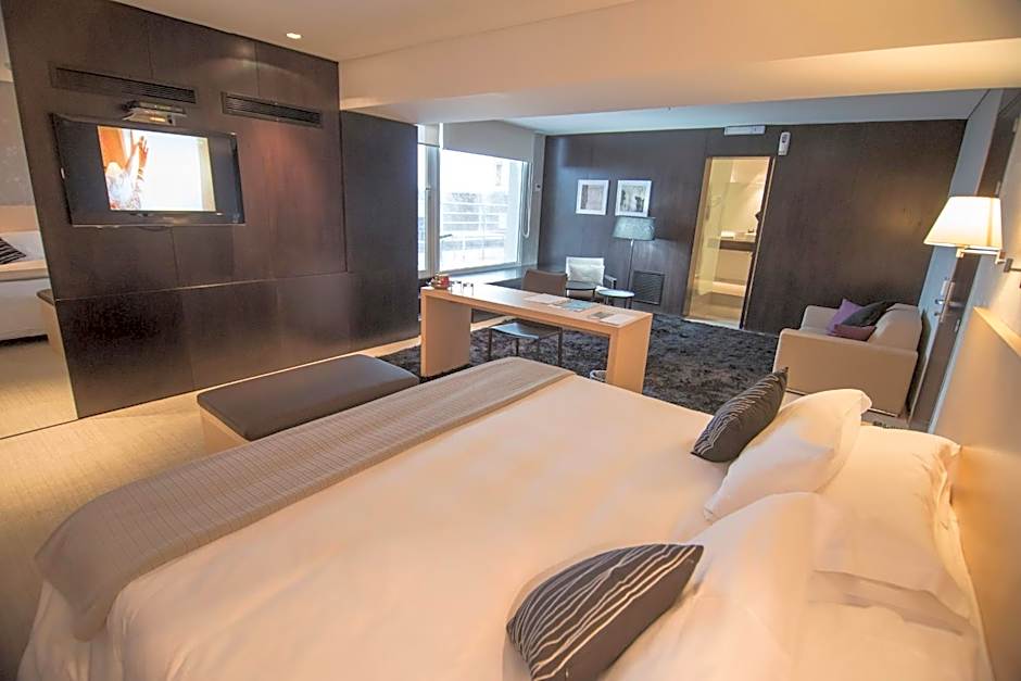 This suite is located on the 6th floor and offers direct access to the terrace with panoramic city views. The suite has a flat-screen, a living room, and a bathroom with a spa bath. Guests have free access to fitness center, playroom and outdoor swimming pool.